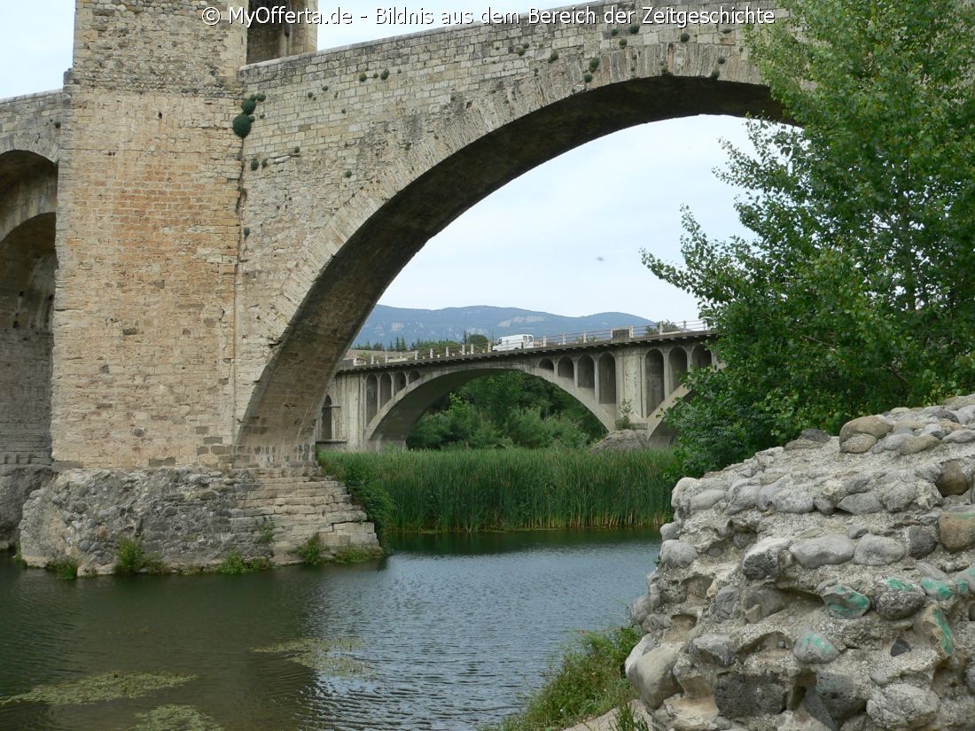 Besalu, zweifellos eine der am besten erhaltenen antiken Staedte Kataloniens, war im Mittelalter ein wichtiger Knotenpunkt. Eine seiner bemerkenswerten Eigenschaften ist die romanische Bruecke aus dem 12. Jahrhundert, die den Fluss Fluvia ueberquert. Die schmalen Backsteinstrassen der Stadt schaffen eine einzigartige romantische Atmosphaere und viele schoene Terrassen ermoeglichen es Ihnen, die Atmosphaere zu geniessen. Foto: Marek Walczak, alle Rechte vorbehalten! |